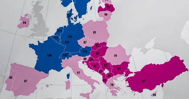 Pet zemalja je 25-33 posto ispod prosjeka, a to su Slovačka, Latvija, Mađarska, Hrvatska i Bugarska.