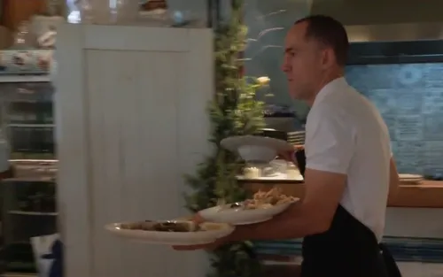 "Imamo velikog finog brancina, imamo manje brancine, oradice, žive jadranske hlapove, to je to za sada što je stiglo", ponosno je konobar Andro Božić predstavio dnevnu ponudu svježe ribe.