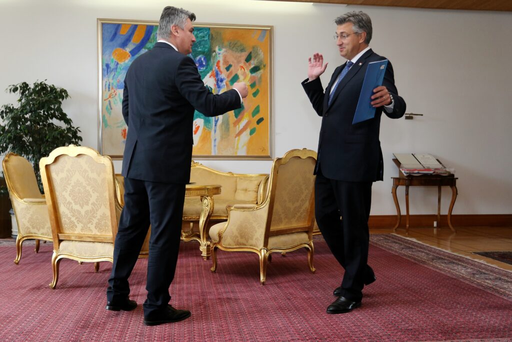 Susret dvojice političara koji odavno ne skrivaju međusobnu netrpeljivost, protekao je - barem za ono kratko vrijeme koliko je kamermanima i fotografima bilo dopušteno da ih snimaju - u prilično mučnoj atmosferi. Javnost pamti kako su se prije četiri godine, kada je Plenković nosio potpise Milanoviću da mu povjeri mandat, barem malo našalili pred kamerama. Tada je Milanović, u duhu ondašnjih epidemioloških mjera, htio obaviti famozno "rukovanje laktom" no Plenković se povukao korak-dva pred njim. Sve uz smijeh, kao što se vidi na fotografiji iz srpnja 2020. godine.