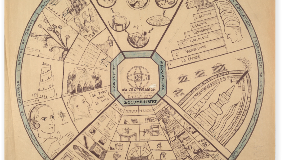 Ova analogna i digitalna izložba u Zavičajnom muzeju Drenove, kroz četiri poglavlja prikazuje odabir ilustracija koje su napravili Otlet i njegov tim u Mundaneumu početkom prošlog stoljeća, a svako je poglavlje posvećeno jednoj zbirci ilustracija koje se međusobno razlikuju po obliku, vizualnom jeziku kao i po prirodi informacija koje vizualiziraju (enciklopedijske, bibliografske, društvene i političke).