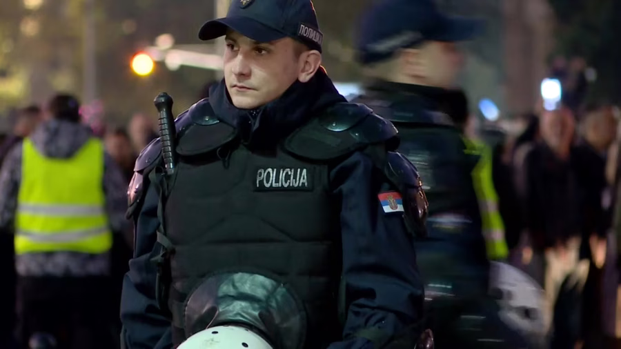 Kordoni policije u opremi za razbijanje demonstracija potpuno su okružili zgradu parlamenta, a velik broj policajaca bio je raspoređen uz samu ogradu, na uglu Bulevara kralja Aleksandra i Takovske ulice, koji razdvaja dva skupa.
