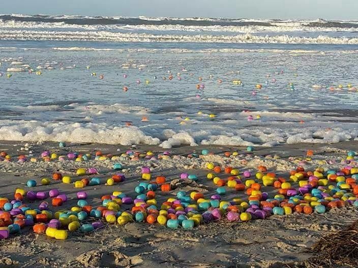 Vlasti vjeruju da kinder jaja potječu iz pet kontejnera koja su ispala s teretnog broda tijekom oluje.