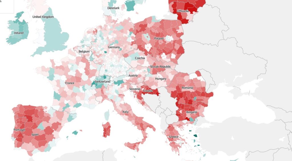 Unutar nacionalnih granica, ruralna područja će snositi glavni teret predstojećeg demografskog opadanja EU-a. U narednih 80 godina, mnogi bi se zaseoci mogli suočiti s istom sudbinom kao Camini u južnoj Italiji.