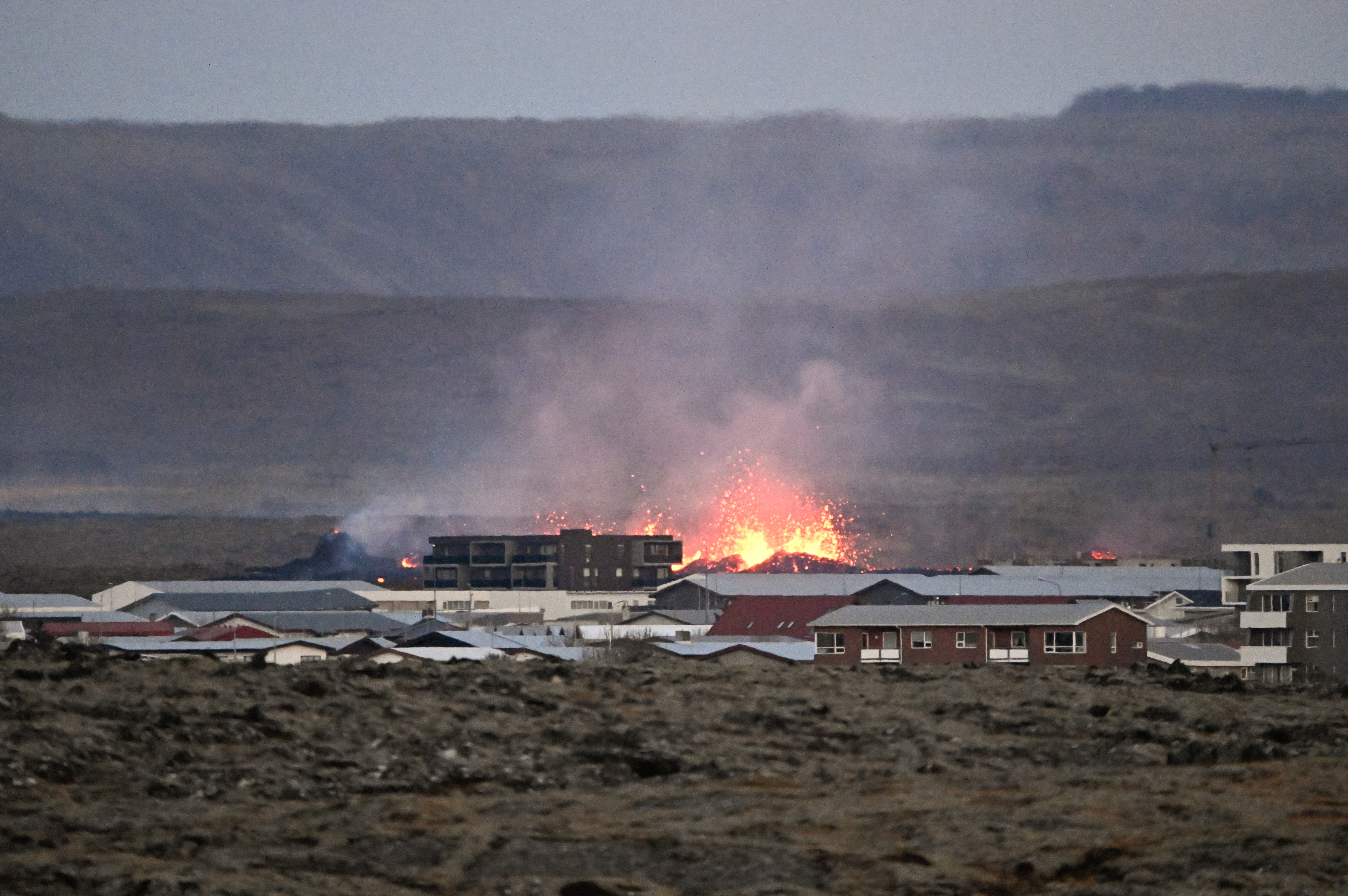 Cijelo stanovništvo je evakuirano iz grada. Islandski meteorološki ured (IMO) priopćio je da je probijanje barijera na nekim mjestima omogućilo da lava dođe do grada, nakon čega su se neke kuće i zgrade zapalile.