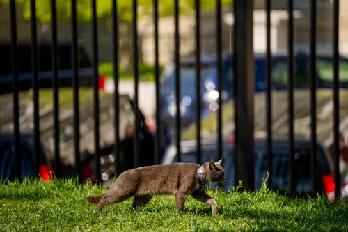 Jedna mačka ušla je na strogo čuvani sjeverni travnjak Bijele kuće u Washingtonu u petak te izazvala metež među novinarima koji su na društvenim mrežama zabilježili pojavu sivog ljubimca zelenih očiju.