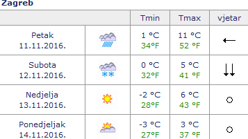 U subotu će snijeg padati, a ponegdje se i zadržavati na tlu i u nizinama središnje Hrvatske.