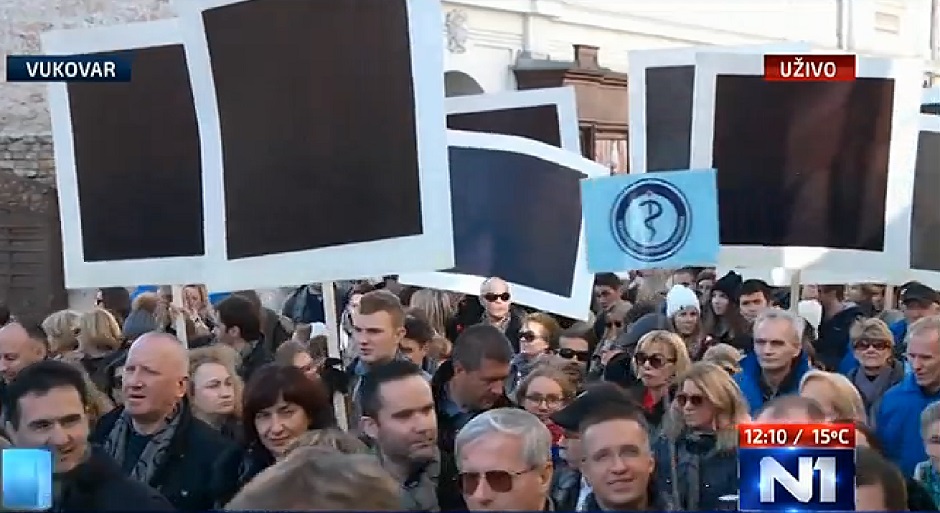 U nepreglednoj koloni našlo se i 12 crnih transparenata, koje su nosili liječnici. Njihova poruka je da se Vukovara treba sjećati svih dvanaest mjeseci u godini.
