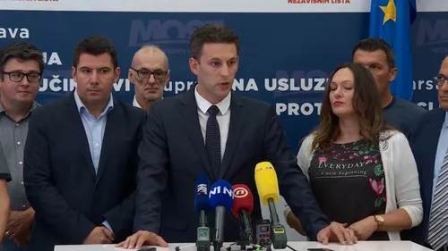 Novinarima se potom kratko obratio politički tajnik Mosta Nikola Grmoja.