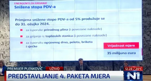 "Osigurali smo priuštive cijene plina za naše građane. Cijena za kućanstva, javni i neprofitni sektor ostaje ista. Vrijednost mjere je 95 milijuna eura. Cijena za kućanstva zadržava se do 1. travnja 2024.", kazao je Plenković.