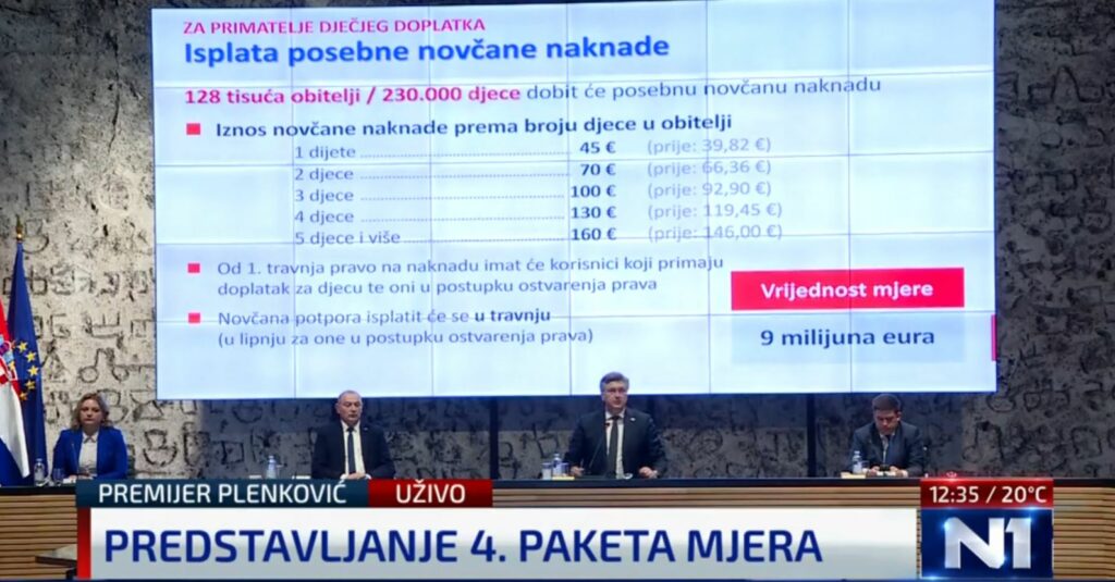 Primateljima dječjeg doplatka isplatit će se u travnju posebna novčana naknada (128 tisuća obitelji odnosno 230.000 djece), a ovisno o broju djece iznosit će od 45 do 160 eura.