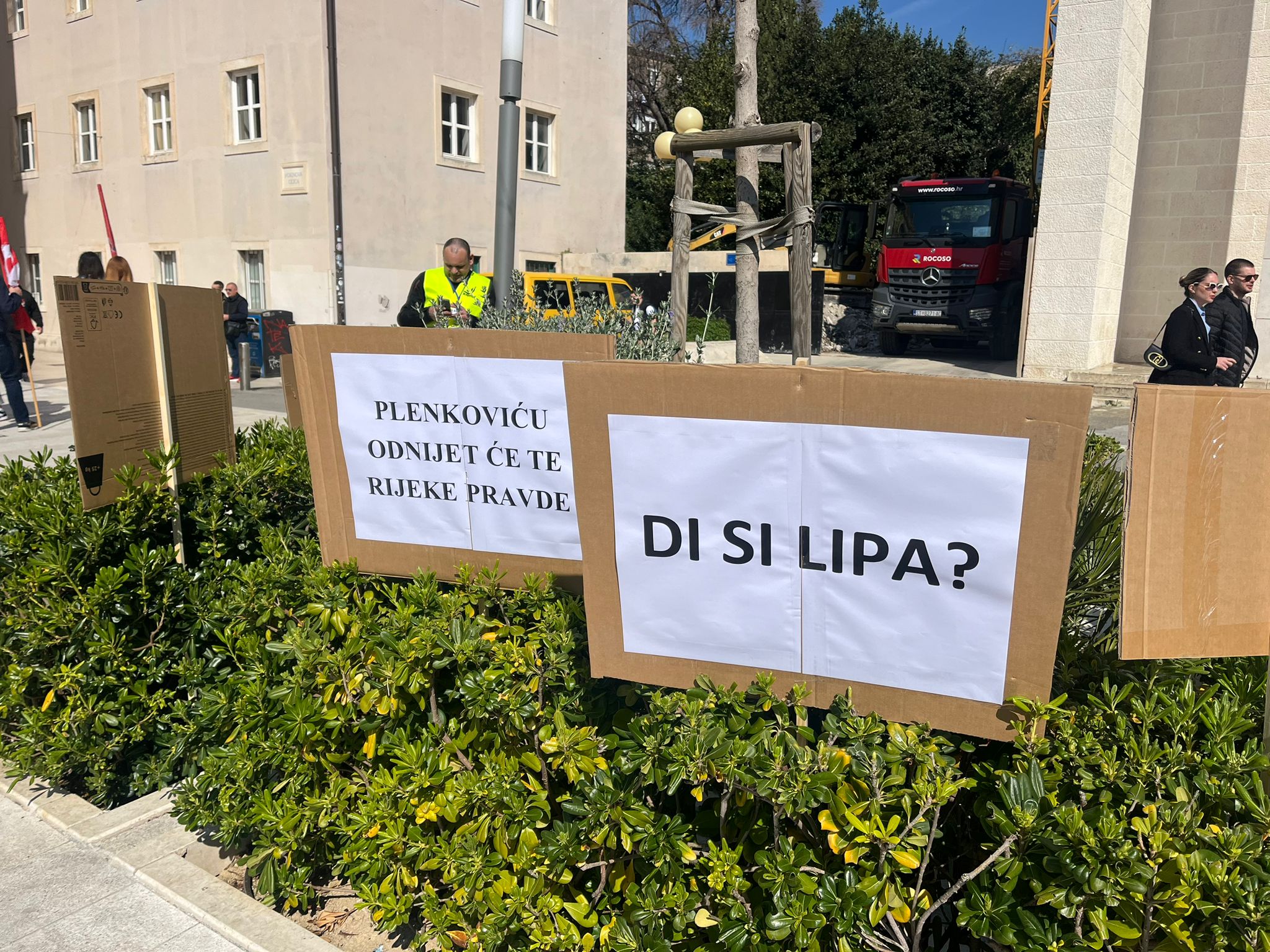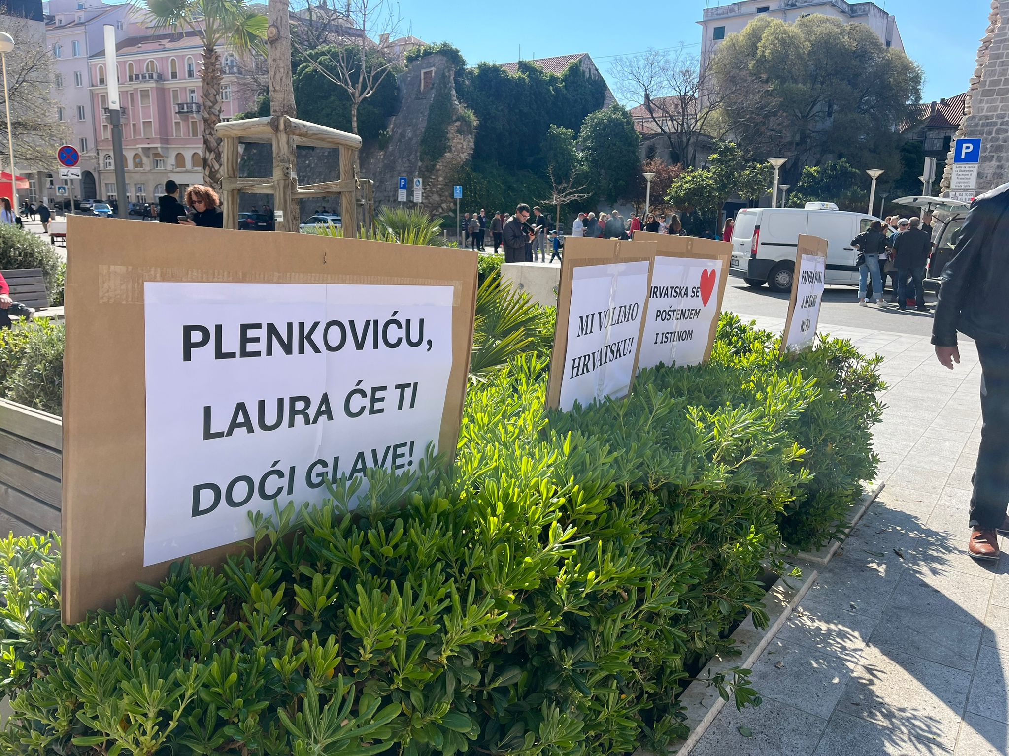 Na prosvjedu u Splitu se pojavili brojni transparenti, među njima je i onaj koji poziva i europsku tužiteljicu Lauru Kovesi.