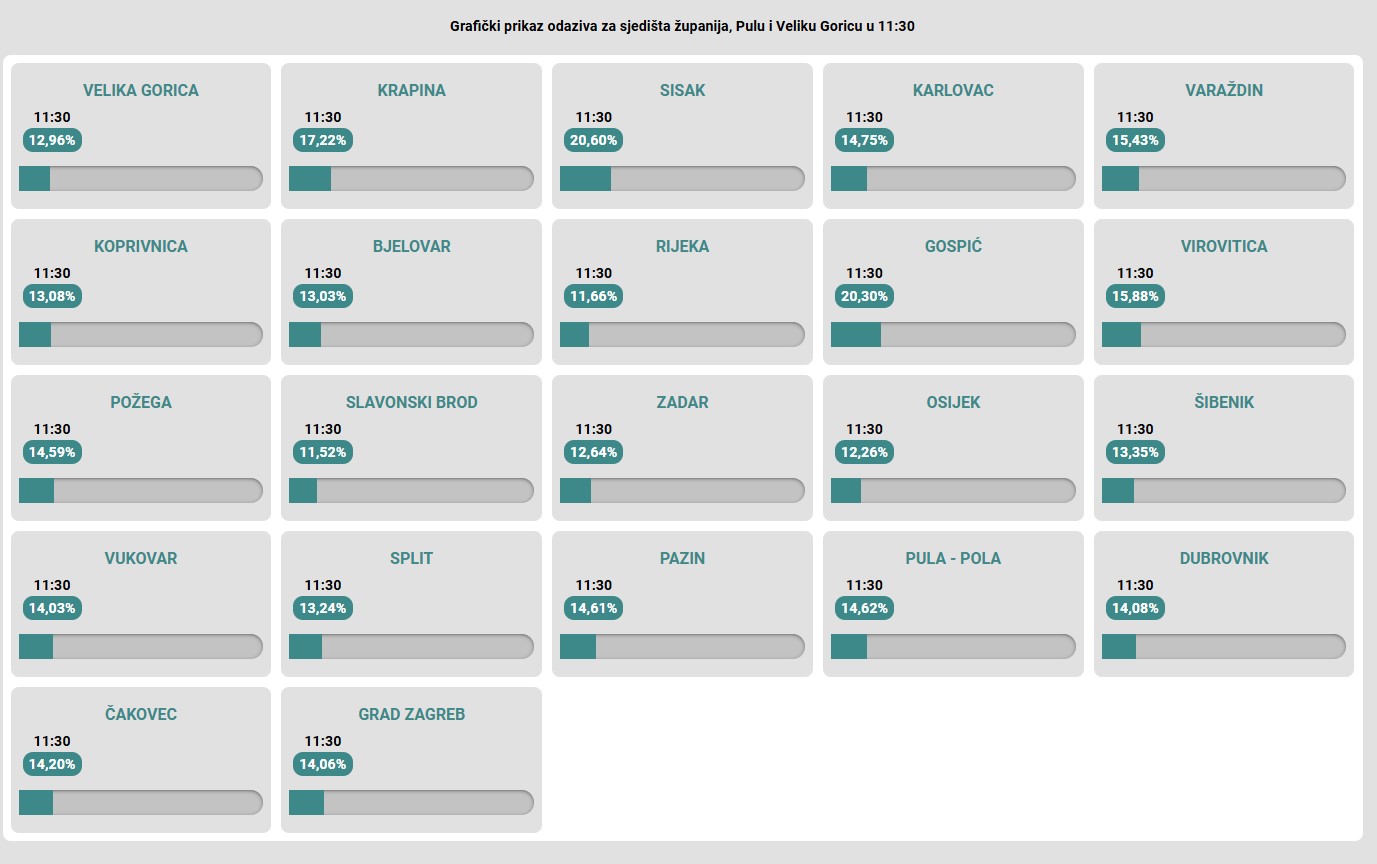 DIP je objavio i podatke o izlaznosti po županijama, ali i po gradovima. Pogledajte na fotografijama ispod: