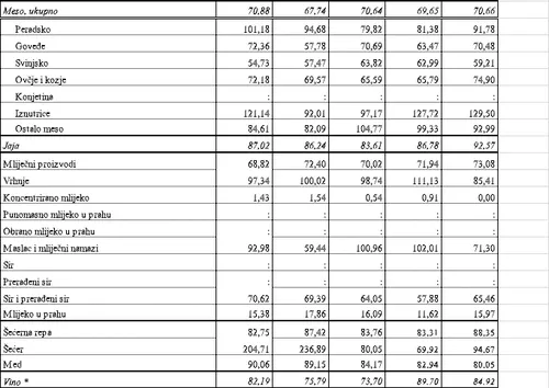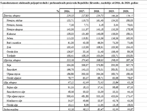Na našu veliku žalost, Hrvatska ne proizvodi u dovoljnoj količini većinu poljoprivredno-prehrambenih proizvoda za potrebe vlastitog stanovništva. Nedostatna nam je proizvodnja kod svih kategorija mesa, mliječnih proizvoda, voća, povrća, biljnih ulja, jaja, meda, vina. U promatranom razdoblju smanjena je samodostatnost gotovo u svim kategorijama proizvoda.