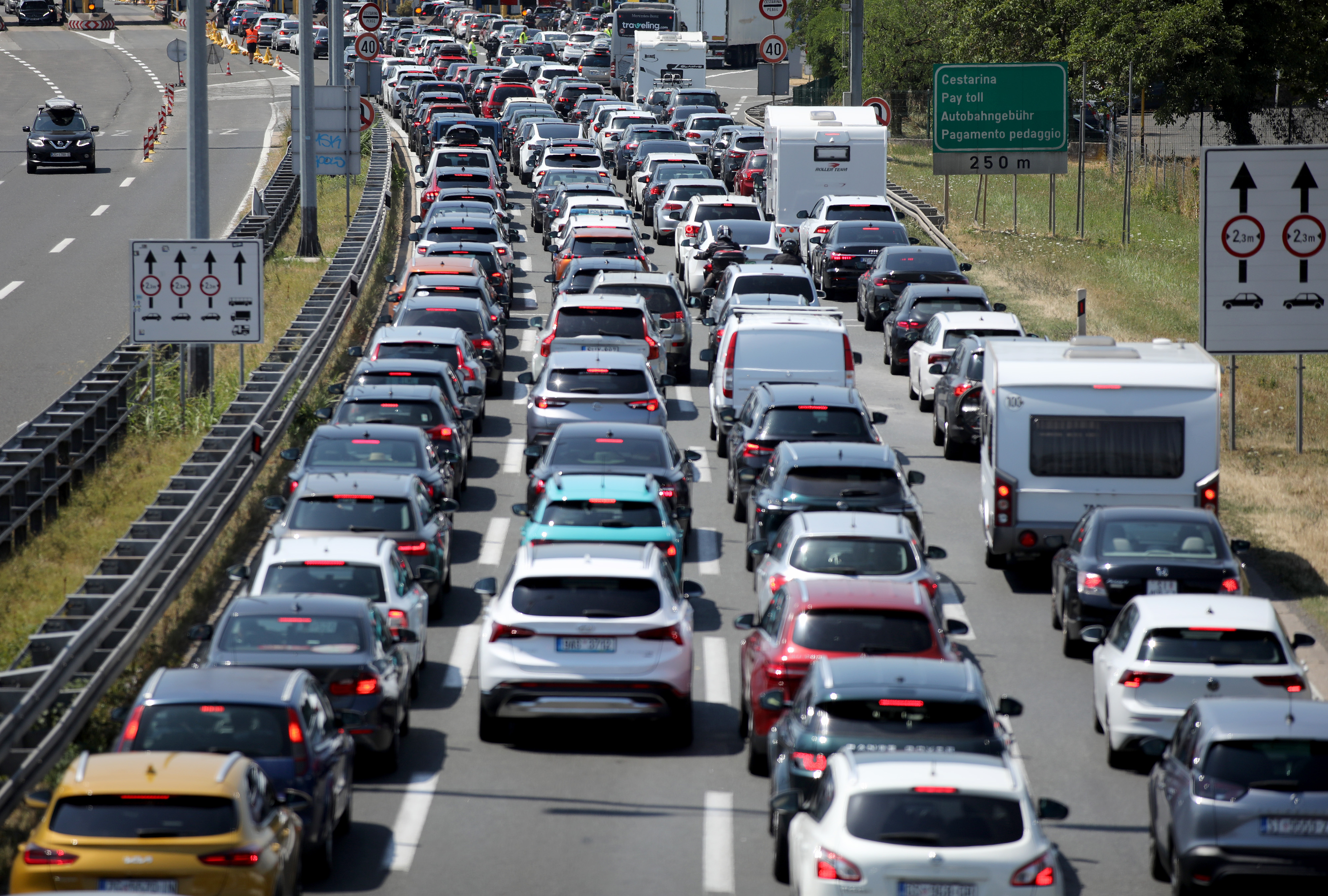 Na Istarskom ipsilonu povećana je gustoća prometa prema Kaštelu i Plovaniji, kolona je oko dva kilometra, te kod tunela Učka u smjeru Rijeke.