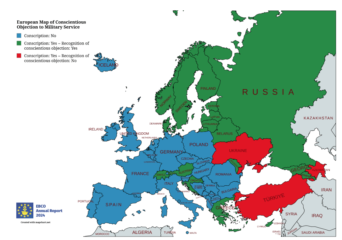 Od ukupno 20 europskih zemalja u kojima je vojni rok obvezan, u trima nije dozvoljen prigovor savjesti: Azerbajdžanu, Turskoj i Ukrajini.