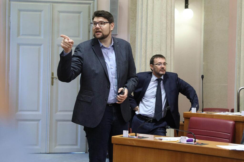 Glasanju je prethodio buran početak sjednice kad su se zaredale uvrede i zahtjevi za stankom. Sjednica je počela u 9:30 sati, a prvi je stanku zatražio SDP-ov Peđa Grbin. "Trebamo mu odati godišnju nagradu za skidanje gaća", kazao je.