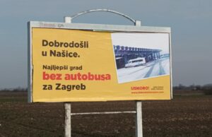 Nakon tog plakata, osvanulo ih je još nekoliko. Na jednom piše "Dobrodošli u Našice - Najljepši grad bez autobusa za Zagreb".