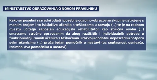 Uoči nove školske godine - šok za roditelje i djecu s poteškoćama u razvoju. Resorno ministarstvo odlučilo je promjeniti Pravilnik i vratiti u nastavu odluku koja nije u primjeni već nekoliko godina, a tiče se broja asistenata u razredima s više učenika kojima treba pomoć.