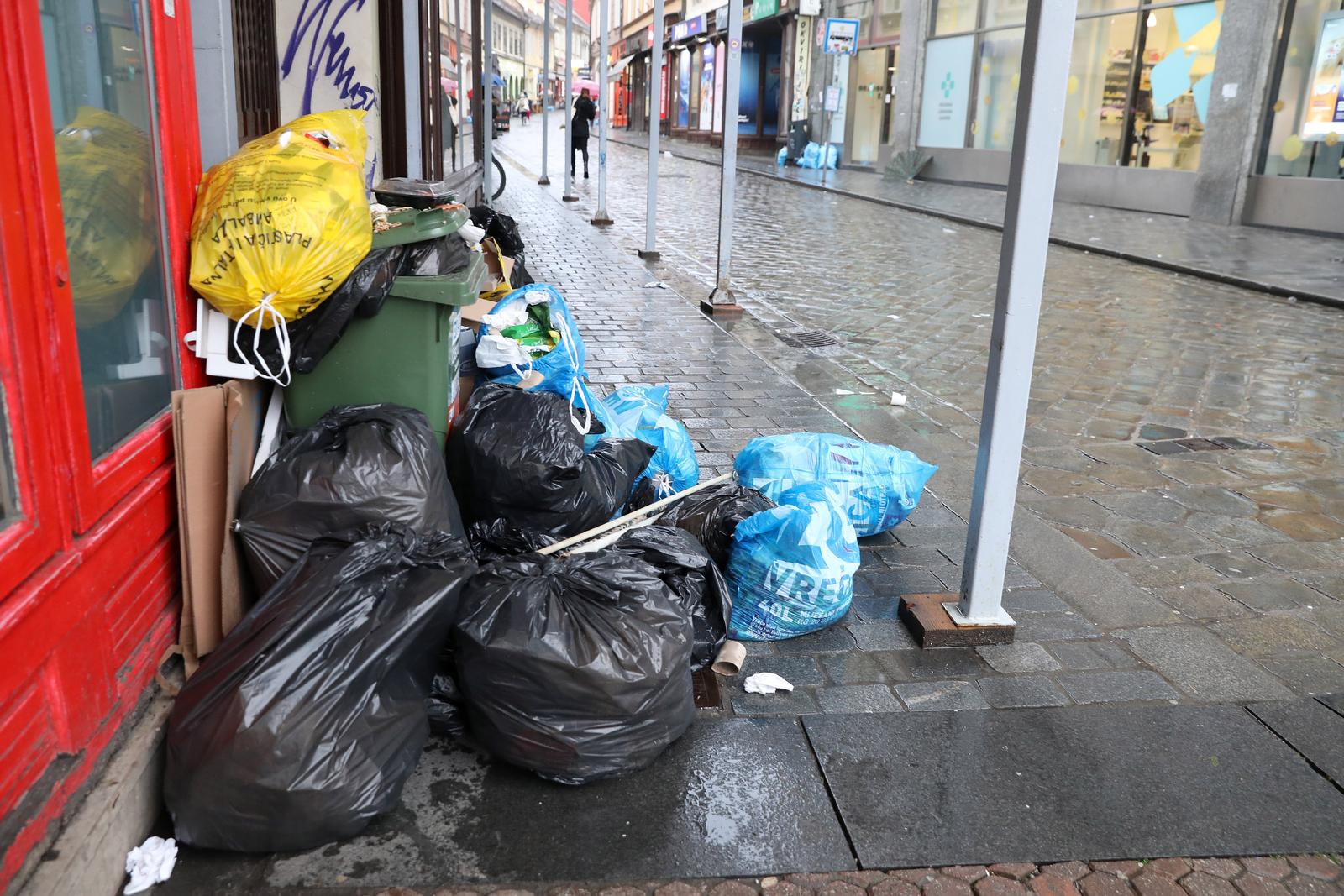 U centru Zagreba i danas isti prizori kao i dan ranije - neodvezeno smeće. Radnici Čistoće nastavljaju štrajk i nitko od njih neće odvoziti smeće dok traju pregovori s upravom Holdinga.