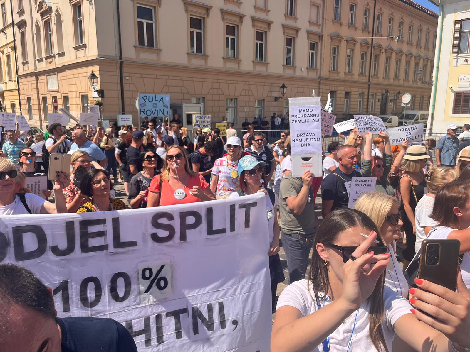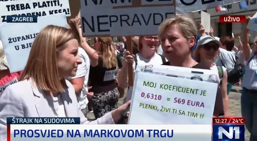"Pozivam ministra i premijera da jedan mjesec uđu u naše cipele i da od ovog povećanja od 100 eura idu na more, plate cipele i sladoled djetetu", poručila je Dijana Gvozdić iz Općinskog suda u Karlovcu.