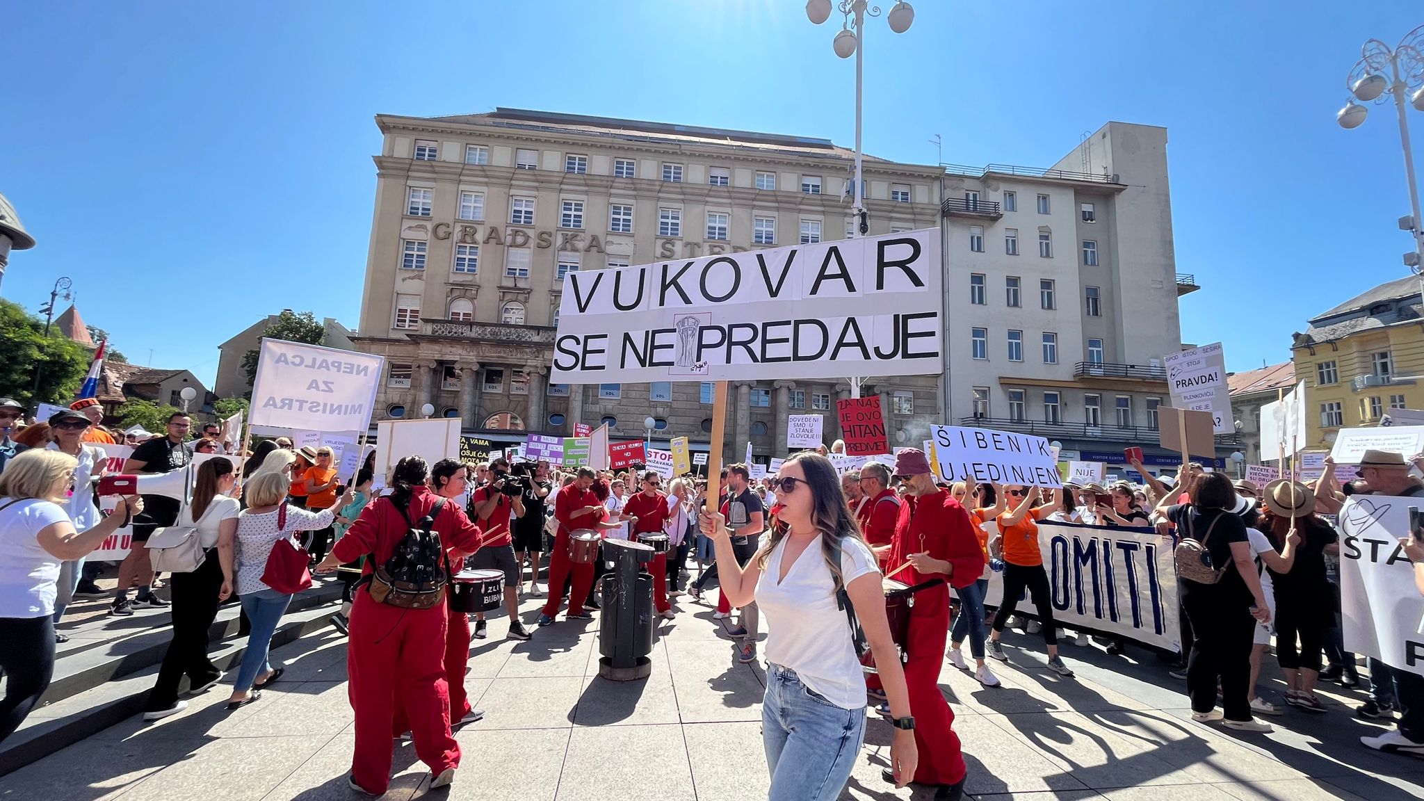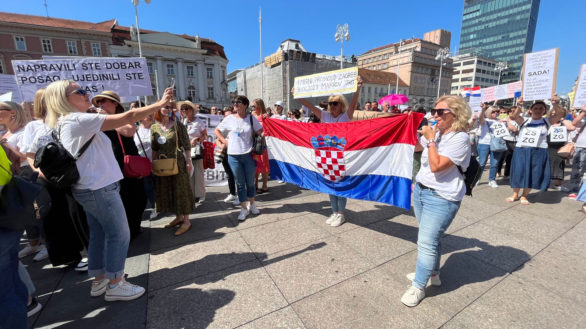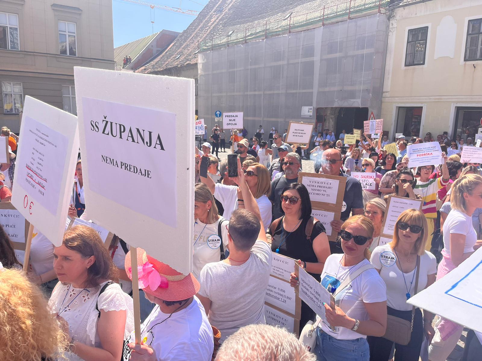 "Idemo do kraja! Rekli su mi da sam mala, da mi treba pokazati gdje mi je mjesto. Pa maloj je mjesto tu među vama! Nemaju oni ovaj osjećaj pripadnosti kakav ja imam danas i ova četiri tjedna kad nismoi imali pojma kakav će odaziv u štrajku biti", poručila je predsjednica Sindikata državnih i lokalnih službenika i namještenika (SDLSN) Iva Šušković,