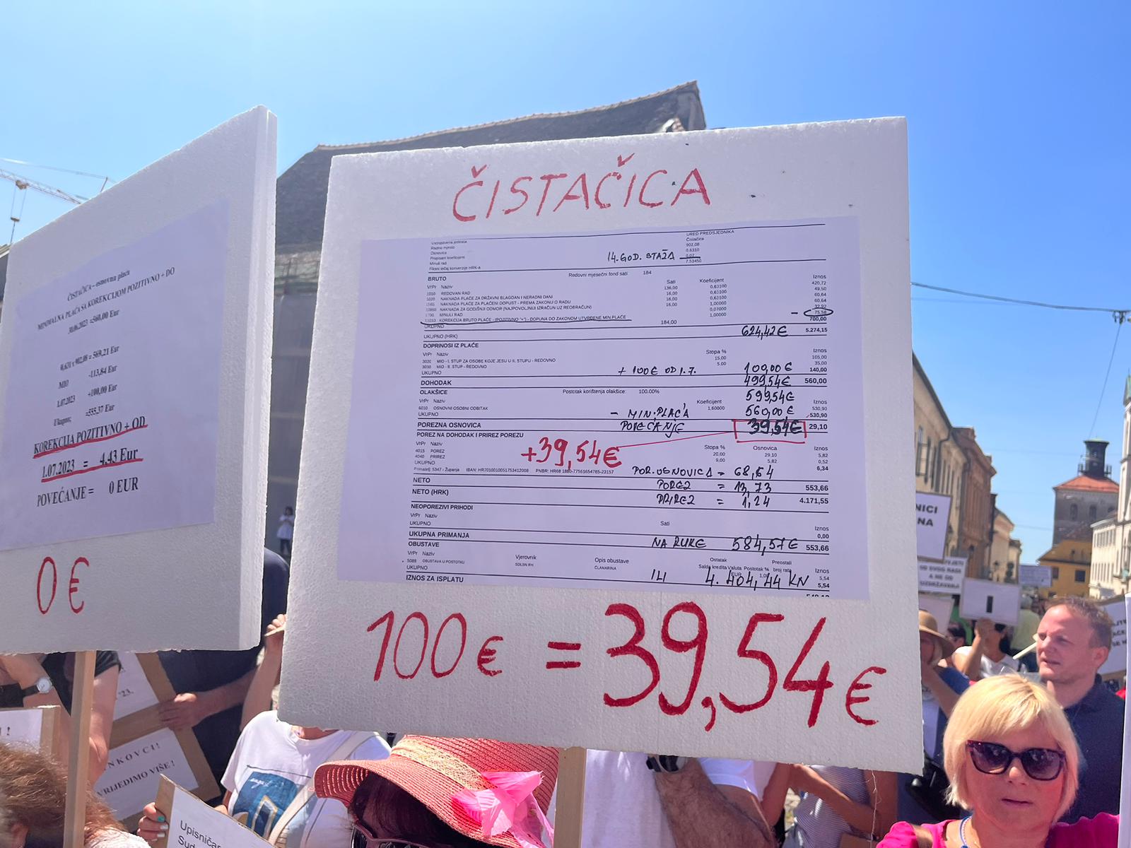 Čistačica na prosvjedu objavila svoju platnu listu