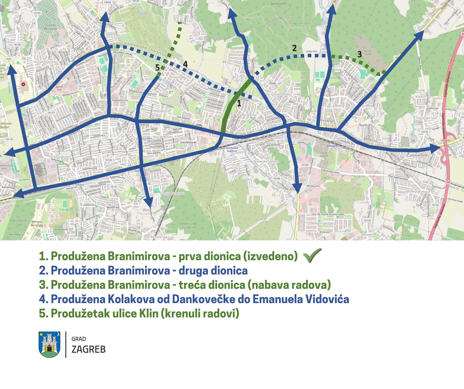 Istaknuo je i da uskoro započinje izgradnja svih faza produžene Kolakove, kao i treće faze Branimirove, dok se druga – najsloženija – očekuje 2026. godine.