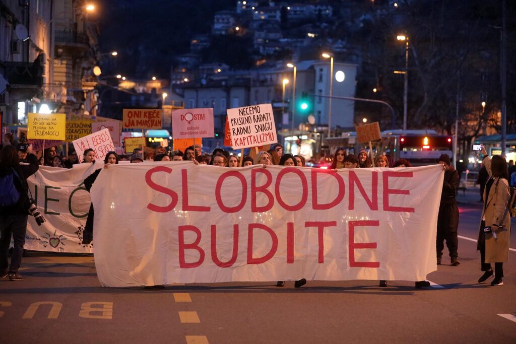 Noćni marš za Osmi mart" pod geslom Slobodne budite održan je u petak navečer u središtu Rijeke u organizaciji Inicijativa Građanke i građani Rijeke, Studentskog centra i udruga LORI, PaRiter i SOS Rijeka.