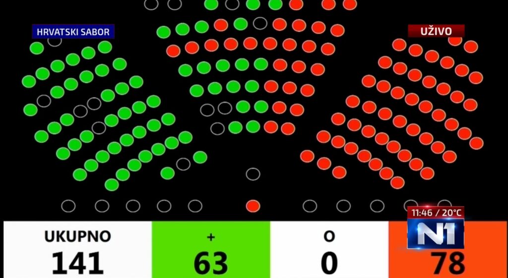 Sa 77 glasova odbijen je zaključak predsjednika Milanovića kojim bi se Vlada obvezala da odmah, a najduže u roku od 15 dana, poduzme sve potrebne mjere kako bi se osiguralo uredno funkcioniranje sudbene vlasti u Hrvatskoj. Odbijen je i zaključak predsjednika Republike kojim bi se obvezala Vlada da u roku od 15 dana utvrdi koje su institucije i osobe odgovorne za financijsku štetu nanesenu HEP-u u provedbi Uredbe o otklanjanju poremećaja na domaćem tržištu energije.