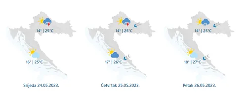Za srijedu je za dio sjeverozapadne Hrvatske upaljen i žuti meteoalarm zbog mogućih grmljavina i pljuskova.